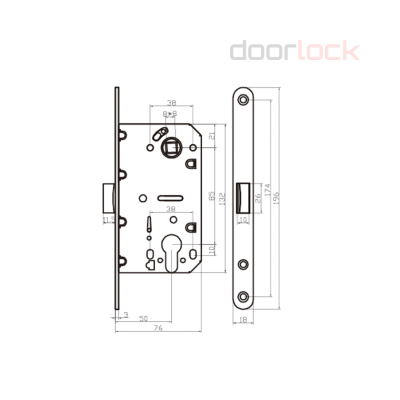 Замок дверной Doorlock V 431/С/50/85/18/SCr, цилиндровый, матовый хром